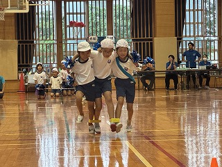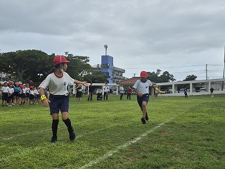 今日の2校時に合同体育を行いました。運動会でできなかった『1・2年生のかけっこ』『3~6年生リレー』を実施しました。天気が心配で開催もあやぶまれましたが、多くの保護者の皆様が見守る中で実施することができました(*^_^*)どの子も笑顔で一生懸命走る姿に感動しました!!!はじける笑顔に、会場を包む歓声と応援!45分という短い時間でしたが走る種目をやり遂げた子ども達です。