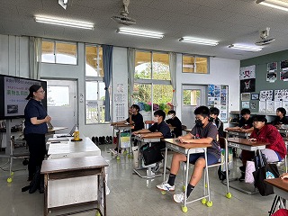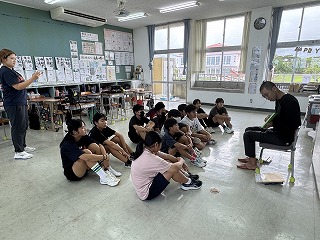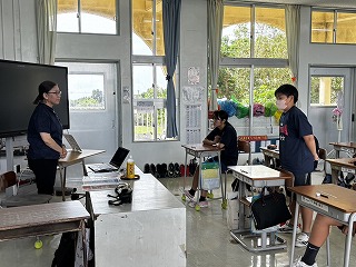 八重山警察署の職員をお招きして薬物乱用教室を開催しました。乱用と聞くと、何度も何度も使用する感じもしますが、危ない薬物は一回でも使用すると乱用になることや、市販薬や処方薬も用法用量を守らず使用すると乱用になることなどを学びました。また、泥酔状態の疑似体験も行うこともできました。薬物乱用なんて私には関係ない!とほとんどの人が思っているでしょう。でも、知識を持つことはとても大事です。今回の学習で薬物や酒類などが体に及ぼす影響(害)を学べて良かったと思います。