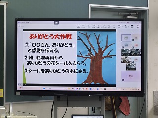 11月24日は『勤労感謝の日』です。それにちなんで、身の回りの人達に感謝の気持ちを持とう!ということで、今日は【ありがとう大作戦集会】をオンラインで行いました。集会を持ったねらいと、宮小で取り組んで行く内容を栽培委員会さんが発表しました。当たり前にある”ありがとう”を当たり前と簡単に捉えるのではなく、互いのありがとうで支え合えるような良い関係づくりや温かい世の中づくりをみんなでできるといいなぁと思います。そして、周りの人からの優しさや支えを自分の力に変えてがんばることで、更なる成長ができる宮小っ子になってくれると思います(*^_^*)