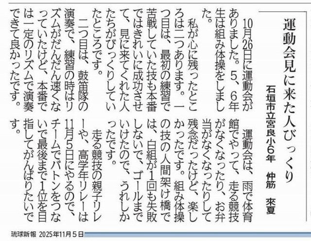 6年生の2人が書いた作文が、沖縄タイムスと琉球新報に掲載されました(*^_^*)すごい!すごい!