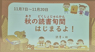 今日の朝の時間は、保護者の皆様の読み聞かせでした。いつもいつも本当にありがとうございます。どのクラスも真剣に読み聞かせを聞いていました(^o^)とても気持ちの良い朝のスタートになりました。さぁ、来週からはいよいよ12月です。早いですね~。2学期まとめの月も元気いっぱい頑張っていきましょう!みんな輝け 宮小っ子!
