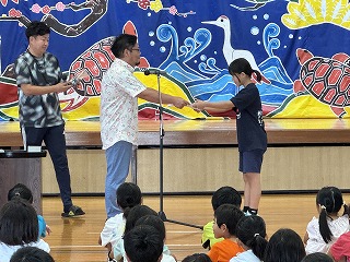 今日の表彰集会では、「バレーボール大会」「軟式野球大会」「サッカー大会」「未来の科学夢絵画展」「税の絵はがきコンクール」に加え、12月に初めて実施した「宮良っ子チャレンジテスト1発満点合格賞」の表彰を行いました。これからも、宮小っ子が様々な場面でチャンスをつかみ、活躍してくれることを楽しみにしています(*^_^*)また、表彰の後は「音楽発表会激励会」も行いました。来る13日(土)に3・4年生が音楽発表会に出場します!応援が可能な方は是非、市民会館での応援をお願いします(*^_^*)