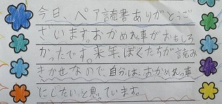 2025/11/17 「ペア読書ありがとう」の手紙の紹介