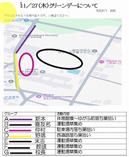 今日も頑張りました毎週のクリーンデー!今日は運動場を中心とした活動でした。雨が落ちてきたので途中で終了しましたが、今日も一生懸命頑張っていた宮小っ子です。気候も冬モードに入り、涼しい中の作業のため気持ちよく活動することができました。ちなみに、毎週場所の設定を行い、様々な場所を交互に清掃しています。全員で宮小全体をキレイにしている大事な大事なクリーンデーです!