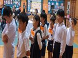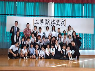 令和7年12月25日、野底小学校では二学期終業式が体育館で行われました。