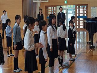 「あわてんぼうのサンタクロース」の合唱では、子ども達の柔らかな歌声が多目的教室いっぱいに広がりました。