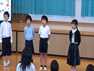1・2年生の代表児童は、二学期に頑張ったことや印象に残ったことを堂々と発表しました。