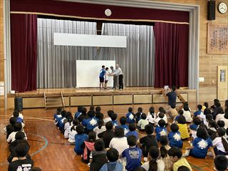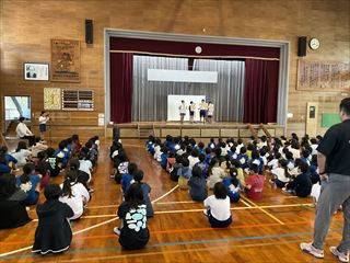 最後には、田尻さんが作詞作曲した曲を演奏していただき、体育館には優しく力強い音色が響き渡りました。子どもたちは終始興味津々で、目を輝かせながら話や演奏に聞き入っていました。音楽を通して、「自分の夢に向かって挑戦することの大切さ」や「人とつながる豊かさ」を感じる貴重な時間となりました。
