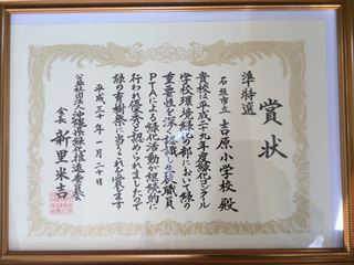 平成29年度県緑化コンクールの表彰式が,20日(土)に伊江島の子どもの森公園を会場に行われました。立派な賞状と盾をいただきました。これを機に,さらに学校の緑化の維持と整備に努めていきたいと思います。