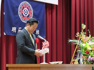 第一部は記念式典です。これまでにご尽力いただいた歴代の校長先生や明石小学校に功労いただいた方々、今回の70周年に合わせて高額な寄付をいただいた方々への表彰があったり、石垣市長 中山義隆様をはじめ、石垣市教育委員会教育長 崎山晃様や八重山教育事務所所長 前三盛敦様など多くの方々よりお祝いのご挨拶をいただいたりしました。