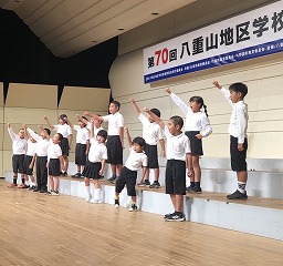 第二部は子どもたちの学習発表会も兼ねた記念祝賀会です。子どもたちはエイサーや明石地区の歴史についての調べ学習発表、わらべうた等を披露しました。