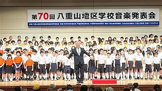 後半には卒業生でもあり、歌手でもある宜保和也さんの70周年スペシャルソング「みんなのアカシ」を一緒に歌わせていただく時間も。明石っ子みんなで考えた断片的な歌詞を和也さんが構成を考えてステキな曲へと仕上げてくださいました。校長先生はギターで、3・4年担任の初妃先生はピアノで参加!かっこよかったです。