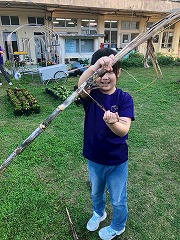 黒糖づくり体験は、昔の作り方を体験するため、すべて手作業です。子どもたちは朝からサトウキビの汚れを拭き、根や芽を落とし、それぞれが唸ったり苦悶の表情を浮かべたりしながらサトウキビを絞りました。
