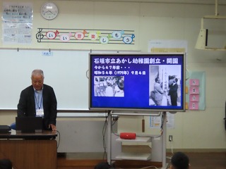 実は、あかし幼稚園は今年度いっぱいでその歴史に幕を閉じ、春から新たに伊原間こども園としてリニューアルすることに・・・。来週には幼稚園の閉園式も控えているということで、園長先生から今までの歴史のふりかえりと、閉園式への参加のお願いが。作詞作曲を務めた宜保和也さんからも