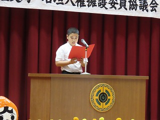 第二部は子どもたちの学習発表会も兼ねた記念祝賀会です。子どもたちはエイサーや明石地区の歴史についての調べ学習発表、わらべうた等を披露しました。