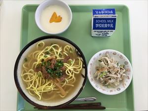 汁そば ごぼうサラダ 杏仁豆腐 牛乳
