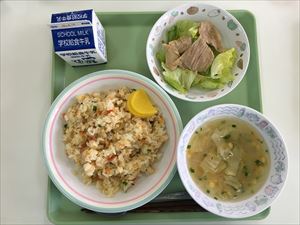 チャーハン しゃぶしゃぶサラダ 春雨スープ 牛乳