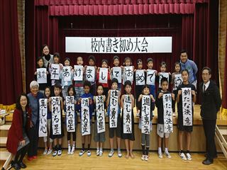 講師に富永順子先生を招き、みんなで書き初めをしました。