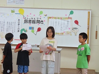 本の貸し出しは始まっていましたが、図書委員会による図書館開きがありました。