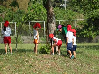 校庭におちている葉っぱから色んな色が出ています☆綺麗に染まったかな?