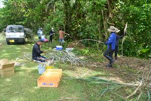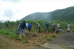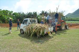 午前中は保護者の皆様ご協力のもと、苗にするサトウキビを刈り取って学校へ運びました。