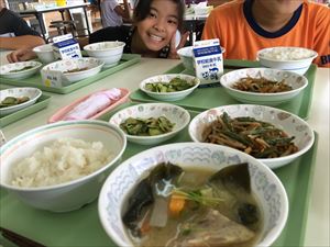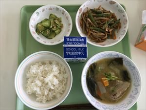 麦ごはん 三色きんぴら なんこつソーキ汁 牛乳