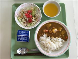 麦ご飯 チキンカレー サラダ オレンジゼリー 牛乳