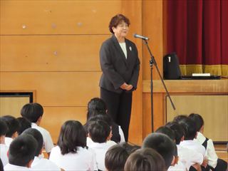 校長講話で音楽を通して楽しく活動しました。