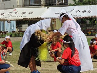 (株)砂盛工業 様より新川小学校で活動する各スポーツ少年団へボールの贈呈がありました。
