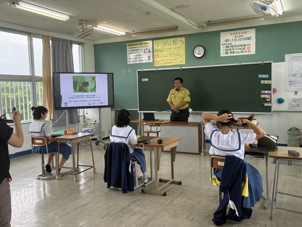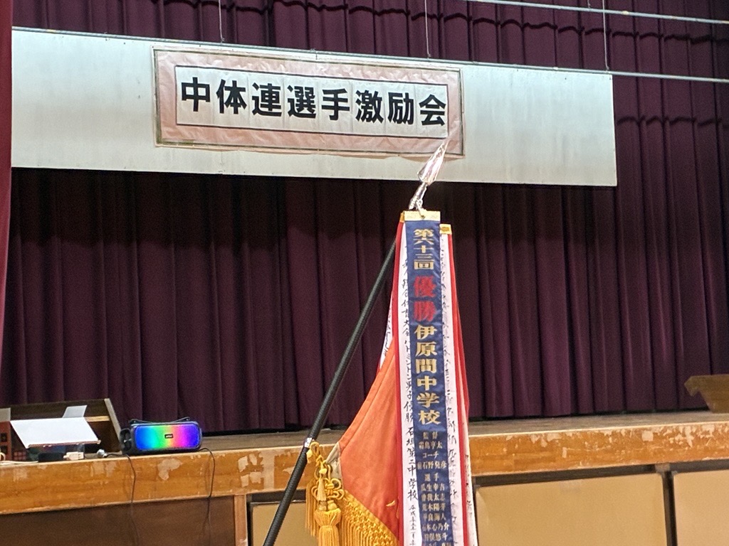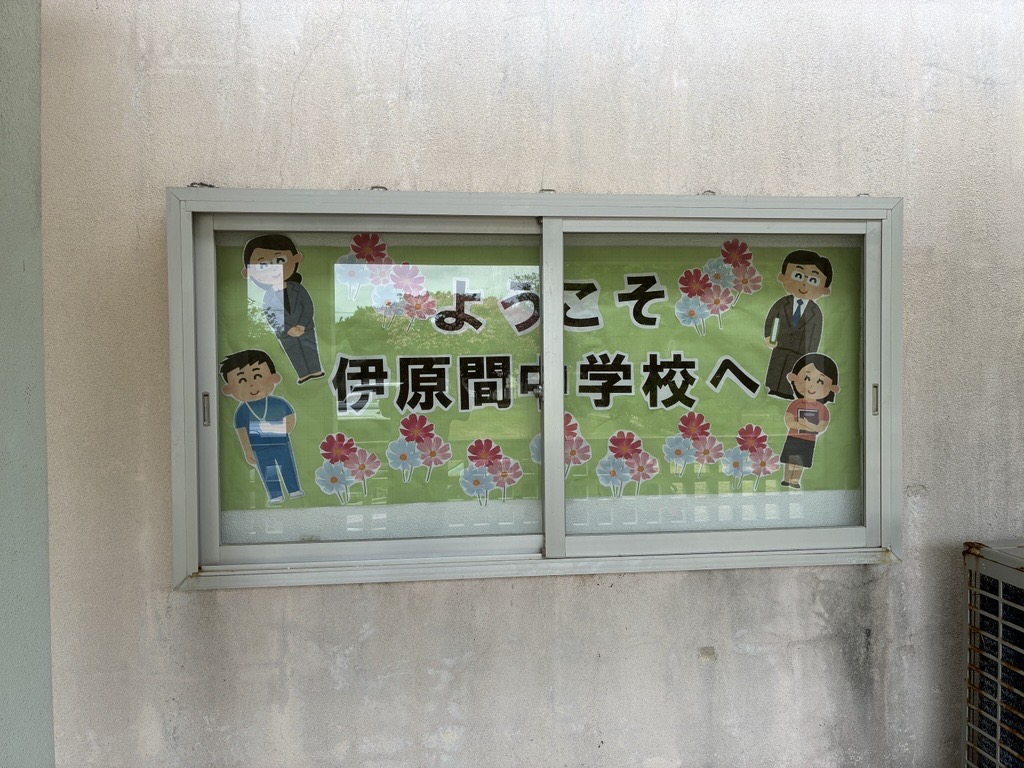 【伊原間中学校 校歌】 1:文化の光さすところ 若き世代の夢のせて 学びの道にいそしめば 北部健児の行進歌 誇りゆたかになりひびく 見よわれらの伊原間中学校♪ 2:静海波のよるところ ここに師あり友ありて 和と協力をモットーに 新風そよぐ学び舎は 理想の丘にそびえたつ 見よわれらの伊原間中学校♪ 3:開拓の鐘なるところ 集うわれらの意気を見よ おもと連峰あおぎつつ 心はおどる若わしの 雄々しく巣立つユートピア 見よわれらの伊原間中学校♪