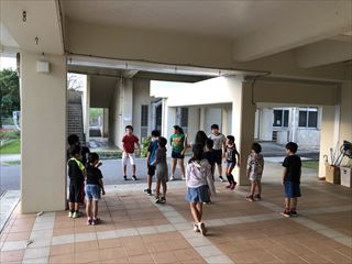 1~2分後そろぞれ学校の様子を見てきたリーダが集まって話し合いをし、今日のボランティア場所を決定します。