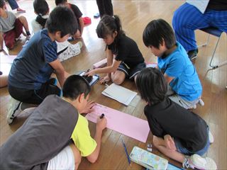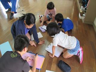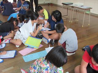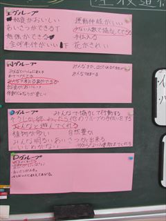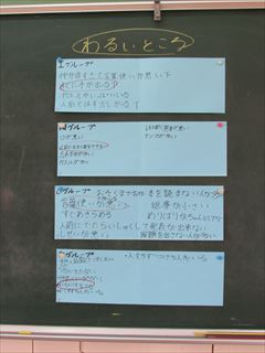 今回のテーマは、「伊野田小学校のよい点と改善点」を縦割り班で話し合いました。