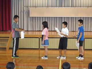 10月18日(金)の朝の時間に、先日行われた小体連陸上大会の伝達表彰を行いました!