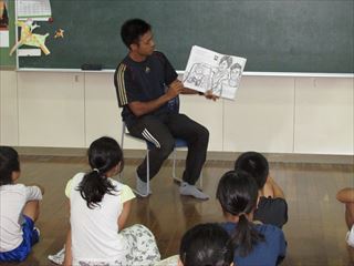 幼稚園児・低学年は本校保護者の砂川丈美さん、高学年は本校教諭の大城竜二が行いました。