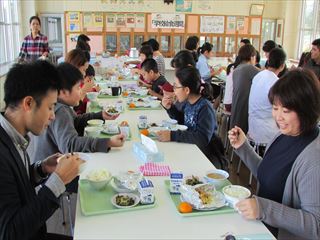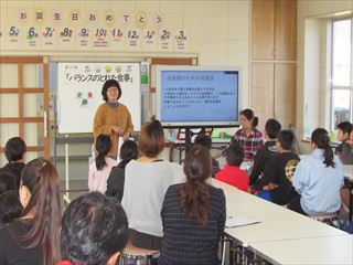 2日目は、本校の給食の献立を考えてくれている栄養士の山里広子先生を講師に招き、「食育講話」を行ってもらいました。また、いつもの給食は「親子給食」ということで、父母の皆さんと食べました。