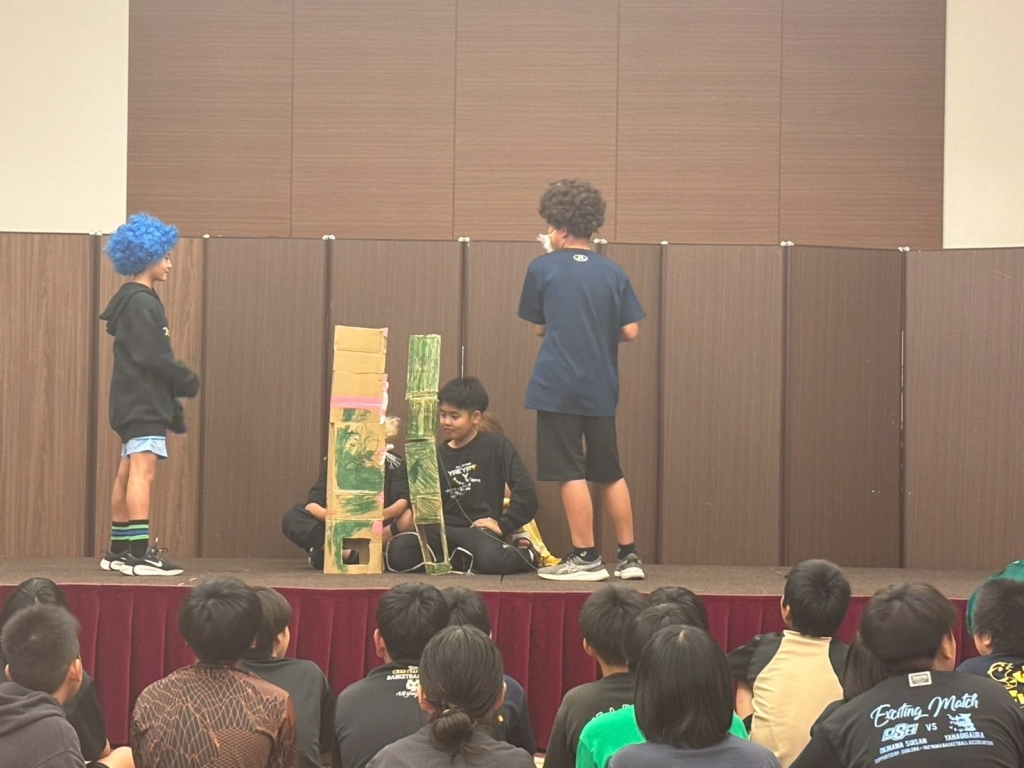 2024年7月3日清掃終了後に体育館で発表集会を行いました。発表学級は、5年1組と2年1組の二学級で子どもたちこれまで学習してきたことを他学級の児童に伝わるようにスクリーンに映し出したりして写真と言葉を使って、堂々と発表してくれました。