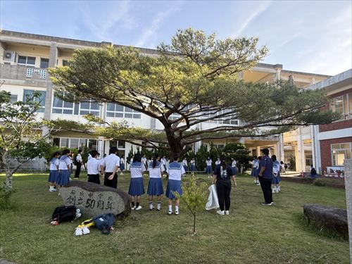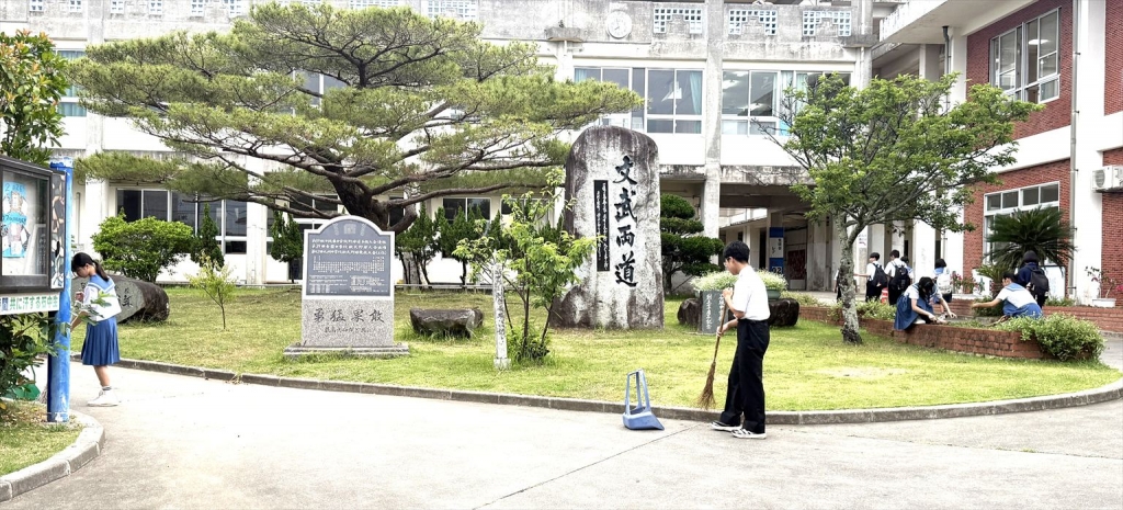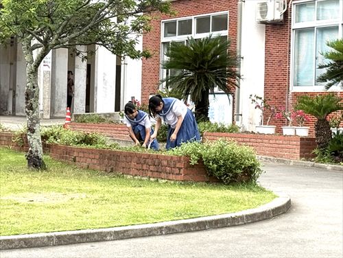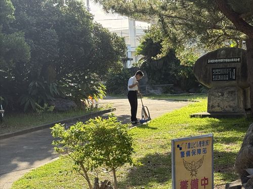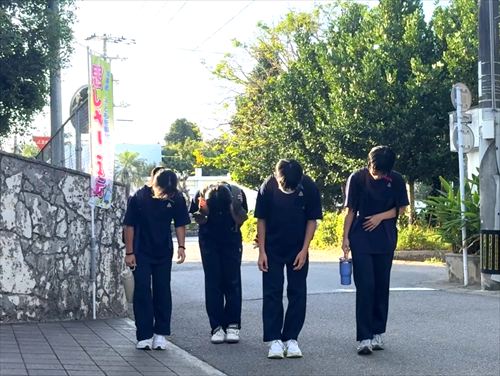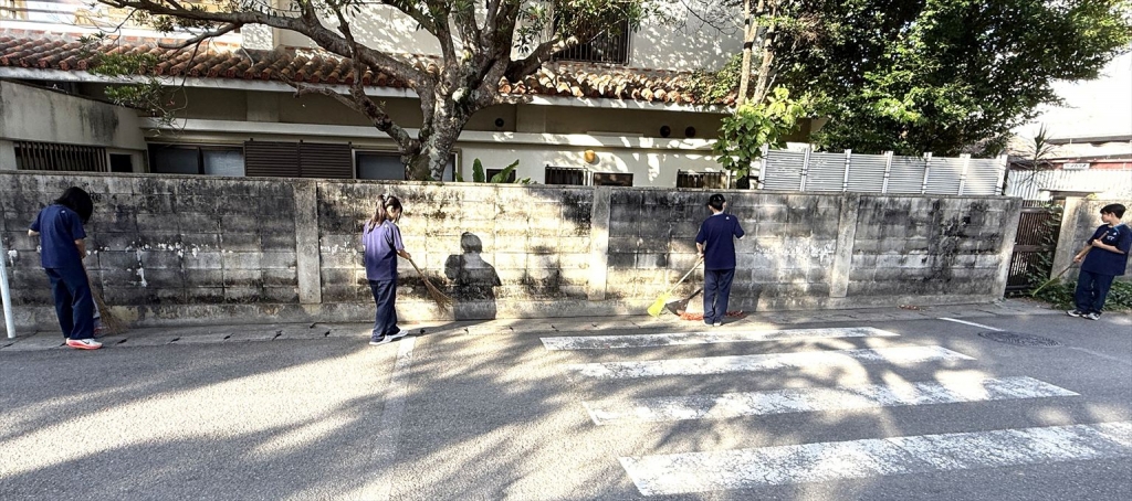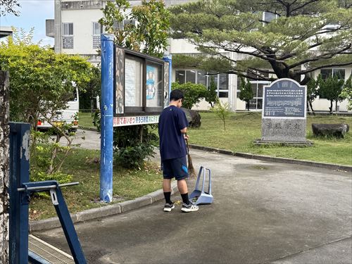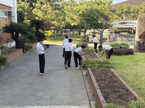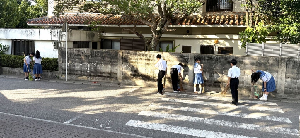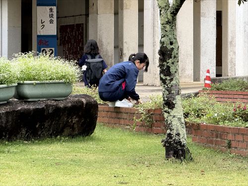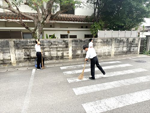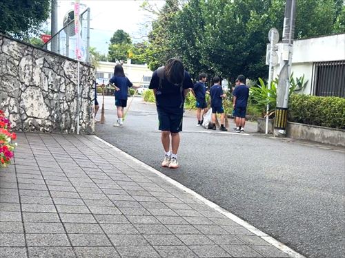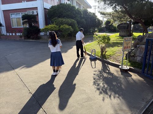 今朝も松の広場でミーティングをする生徒会の皆さんです♪ ミーティング後、清掃活動などに取り組んでいました(^^)/