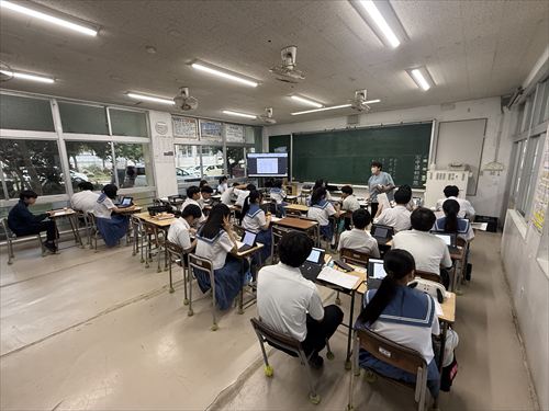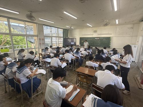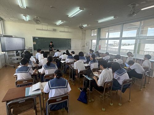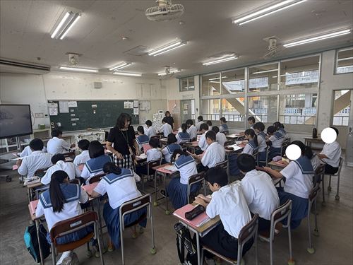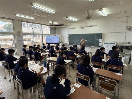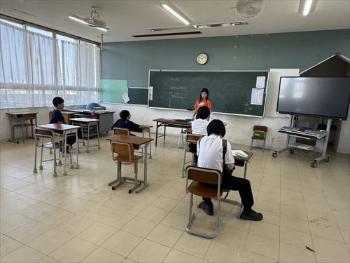 2年4組、英語の授業です♪ 復習として「未来表現のbe going to~」などについて学習に取り組んでいました(^^)/