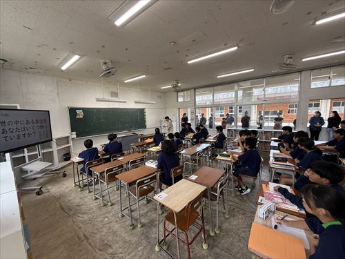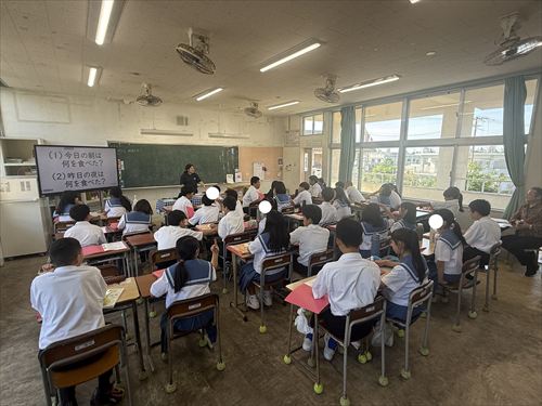 1年5組、家庭科の授業です♪ 「しっかり朝ご飯を食べよう」「食べることでいいこと」等について、学習に取り組んでいました(^^)/
