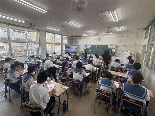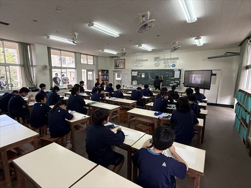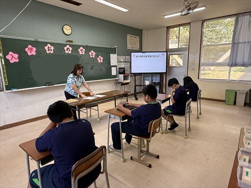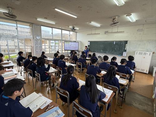 1年4組、英語の授業です♪ 電子黒板を活用しながら、英語の発音練習等の学習に取り組んでいました(^^)/