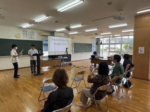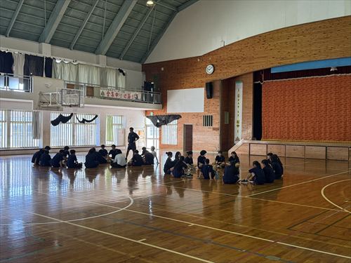 本日、県大会へと出発するということで、事務室まで結団式を行いました。
