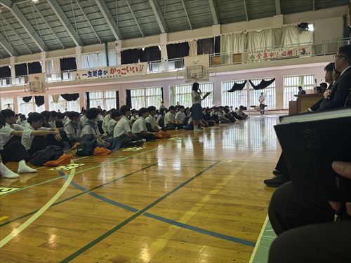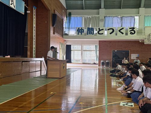 こちらは3年生の様子です♪ 生徒会役員の皆さんが中心となり、学年のテーマなどを発表していました(^^)/