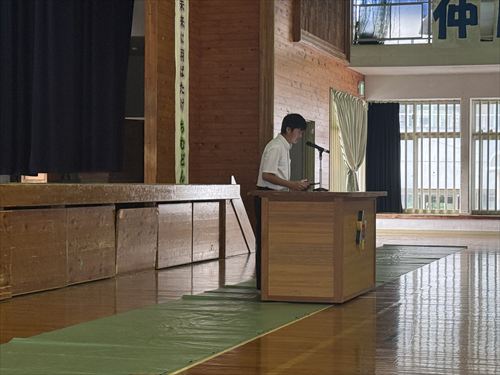 続いて行われた1学期始業式では、まず全員で校歌を斉唱し、清々しい歌声が体育館に響き渡りました♪