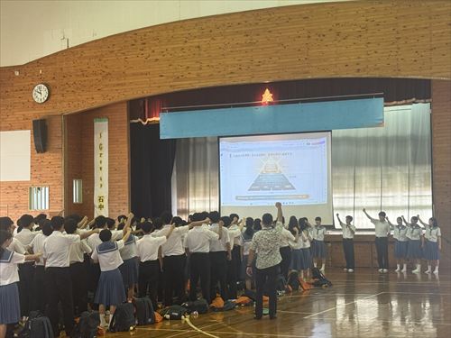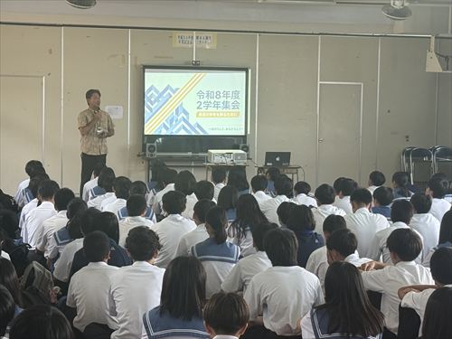 こちらは2年生の様子です♪ 学年主任の波照間先生より最高の学年をつくるために「認め愛、支え愛、励まし愛が大切 ♪」等のお話がありました(^^)/