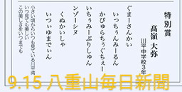 本校の生徒が、とうばらーま大会 作詞の部 特別賞を受賞しました。