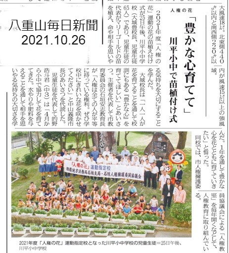 10月26日(火)の新聞に,人権の花「植え付け式」の様子が載りました。