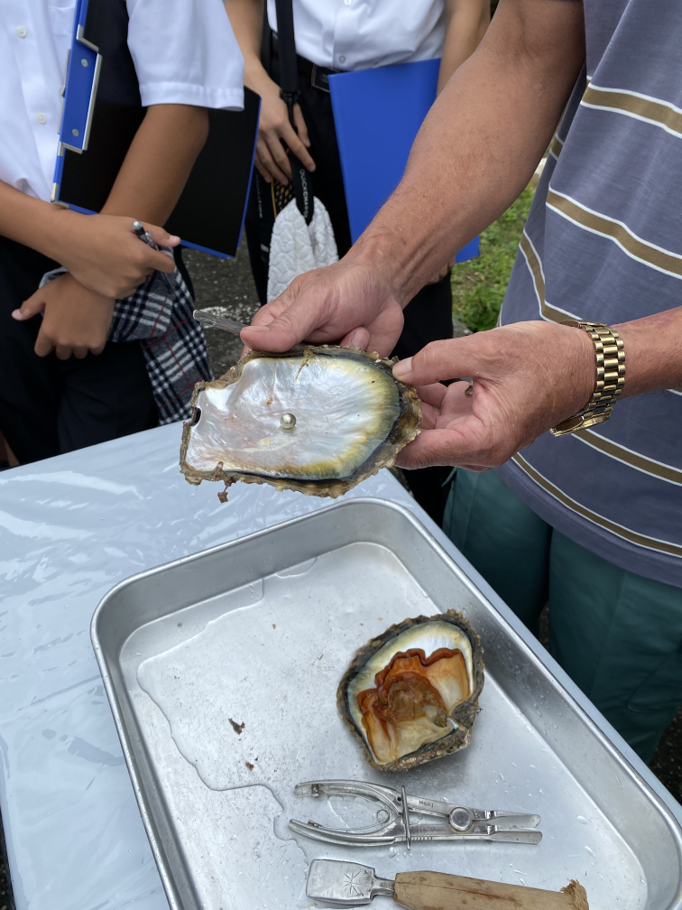 では、黒蝶貝が真珠を生成する過程の説明や実際に貝から