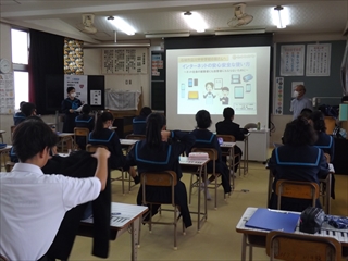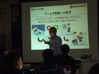 e-netキャラバンの方を招き、ネットの安全な使い方や人権を守ることについて講話していただきました。気軽で便利な分、気をつけなければいけない事が多くありました。キーワードは「自制力・判断力・責任力」だそうです。