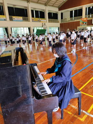 ☆4月から集会時の指揮と伴奏を務めてくれた3年生のお二人、
