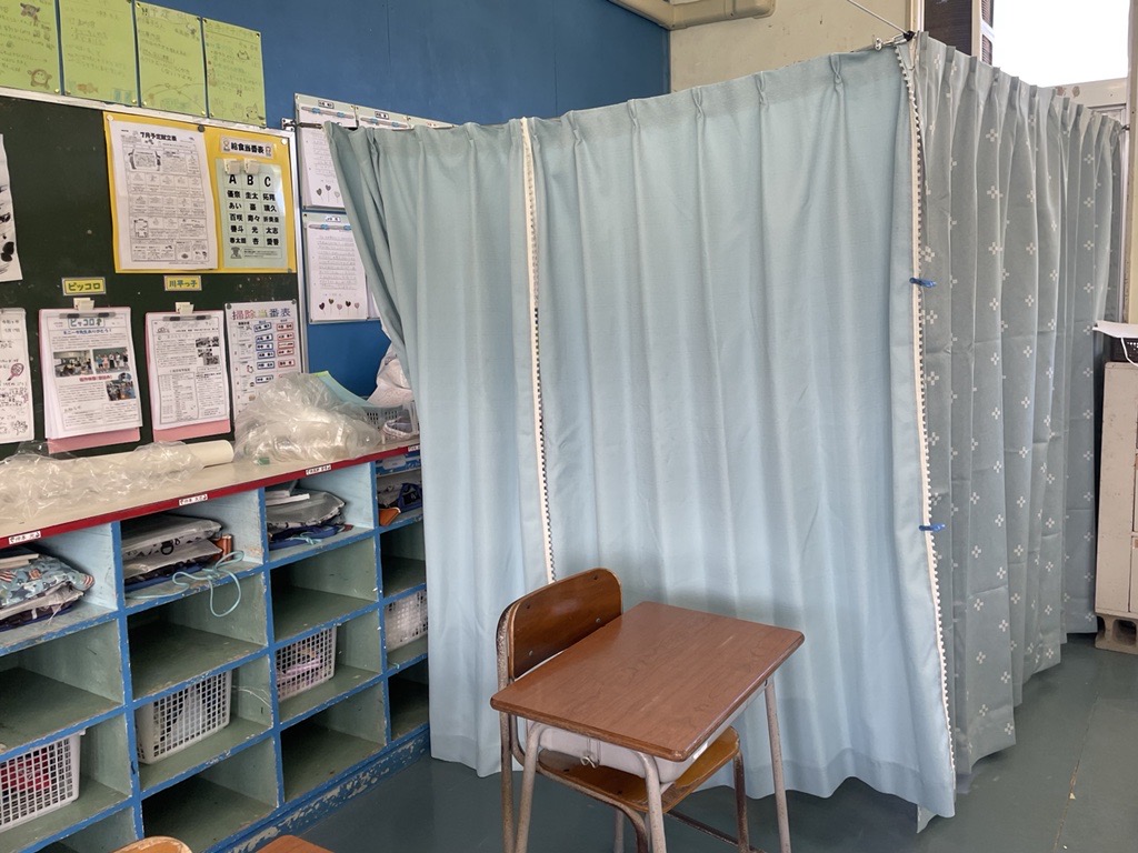 6年生教室の更衣スペース